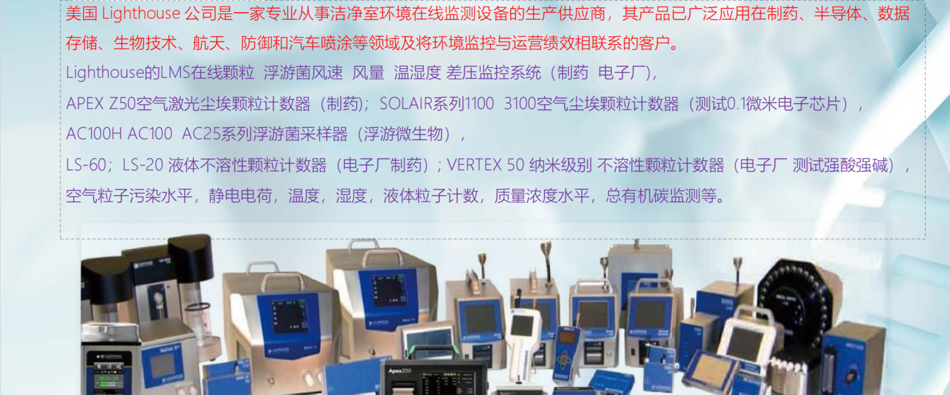 ?美國 LIGTHTOUSE 系列:作為中國區域總代理兼全國售后和校準中心,我們全力提供在線粒子、浮游菌、風速、風量、差壓...